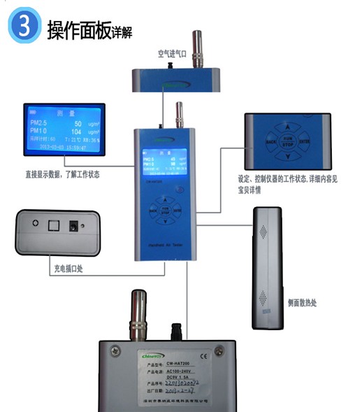 手持式PM2.5速測儀CW-HAT200是專用于測量空氣中PM2.5(可入肺顆粒物)及PM10(可吸入顆粒物)數(shù)值的專用檢測儀器。是在吸收國外先進(jìn)的高靈敏度微型激光傳感器技術(shù)基礎(chǔ)上自主開發(fā)出的集空氣動力學(xué),數(shù)字信號處理, 光機(jī)電一體化的高科技產(chǎn)品. 該儀器具有測試精度高, 性能穩(wěn)定, 多功能性強(qiáng), 操作簡單方便的特點,可廣泛適用于公共場所環(huán)境及大氣環(huán)境的測定,還可用于空氣凈化器凈化效率的評價分析。