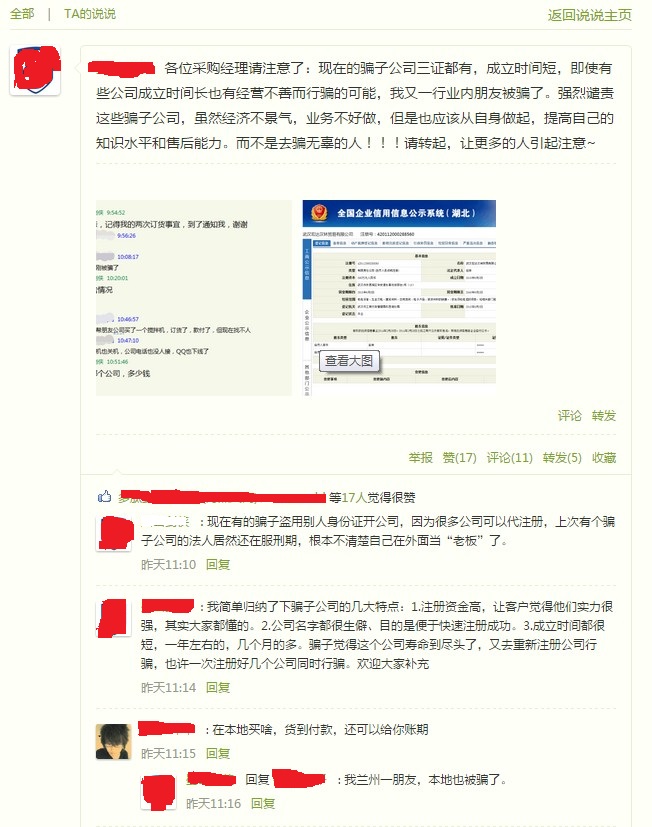 剛在空間看到一則朋友發(fā)的說說,提醒采購朋友們別上當(dāng)。(見下圖)